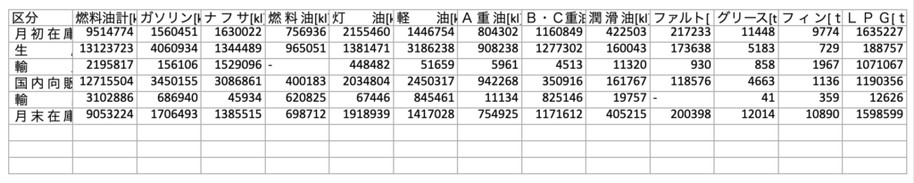 # このスクリプトは経済産業省の石油統計速報Excelから